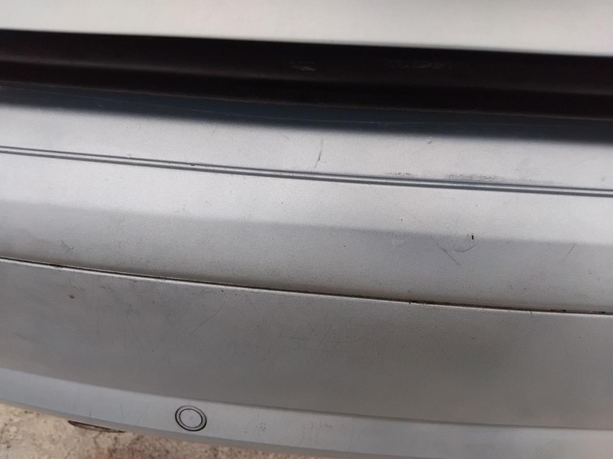 Audi A3 8P Bj.2007 original Stoßfänger Stoßstange hinten 3-Türer LY5J Liquidblaumetallic Fahrzeug mit Parkhilfe (inkl. 4 PDC-Sensoren), starke Lackschäden und Kratzer, schlecht nachlackierte Stellen, kleine Druckstelle, 2 kleine Beulen rechts, Neulack erforderlich, genauer Zustand erst nach Demontage sichtbar