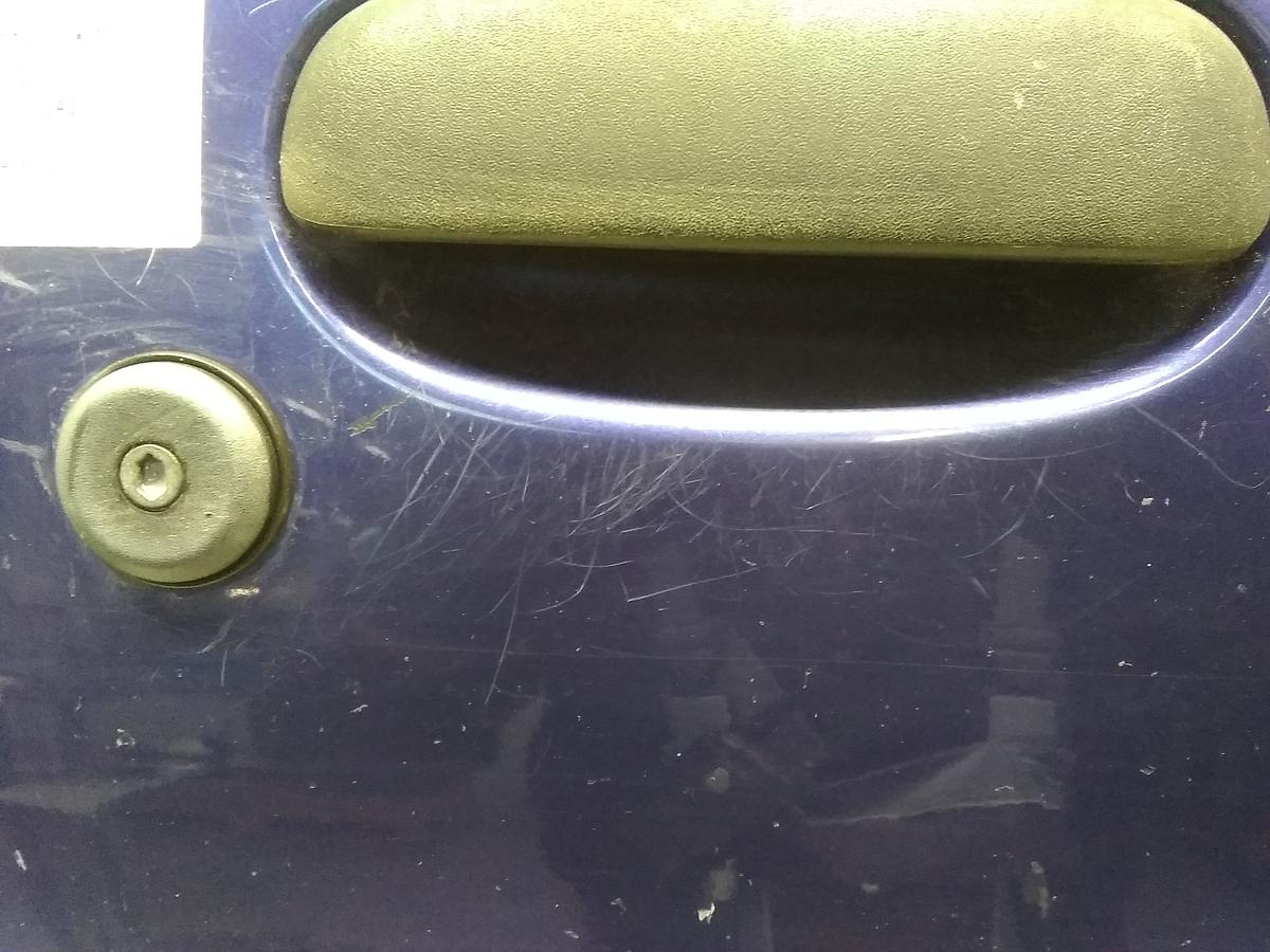 Ford Fiesta Typ JAS BJ1999 Tür vorn rechts, 5-türig, Melina Blue metallic, manueller Fensterheber, Scheibe grüncolor, ohne Innenverkleidung und Außenspiegel, Kratzer, Lackschäden, winzige Dellen