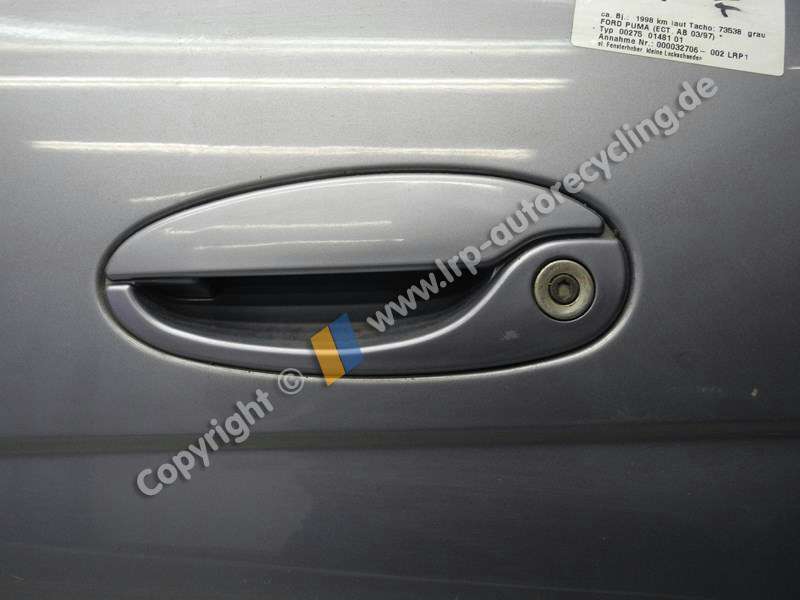 Ford Puma BJ1998 Tür vorn links Fahrertür 1038147, Polaris-Grau, Rohbau: ohne Türscheibe, Fensterheber, Außenspiegel, usw..., Lackschäden, Gebrauchsspuren