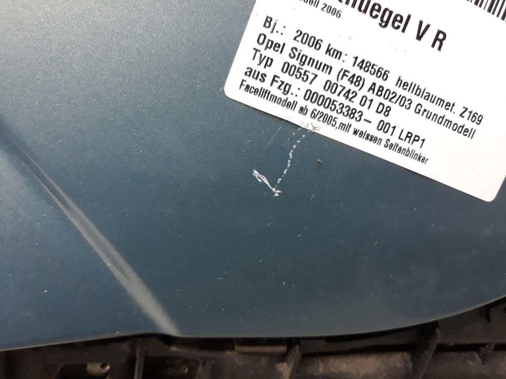 Opel Signum Kotflügel vorn rechts original Z169 hellblau BJ2006 Faceliftmodell ab 6/2005, mit weissen Seitenblinker, Lackschäden, Kratzer