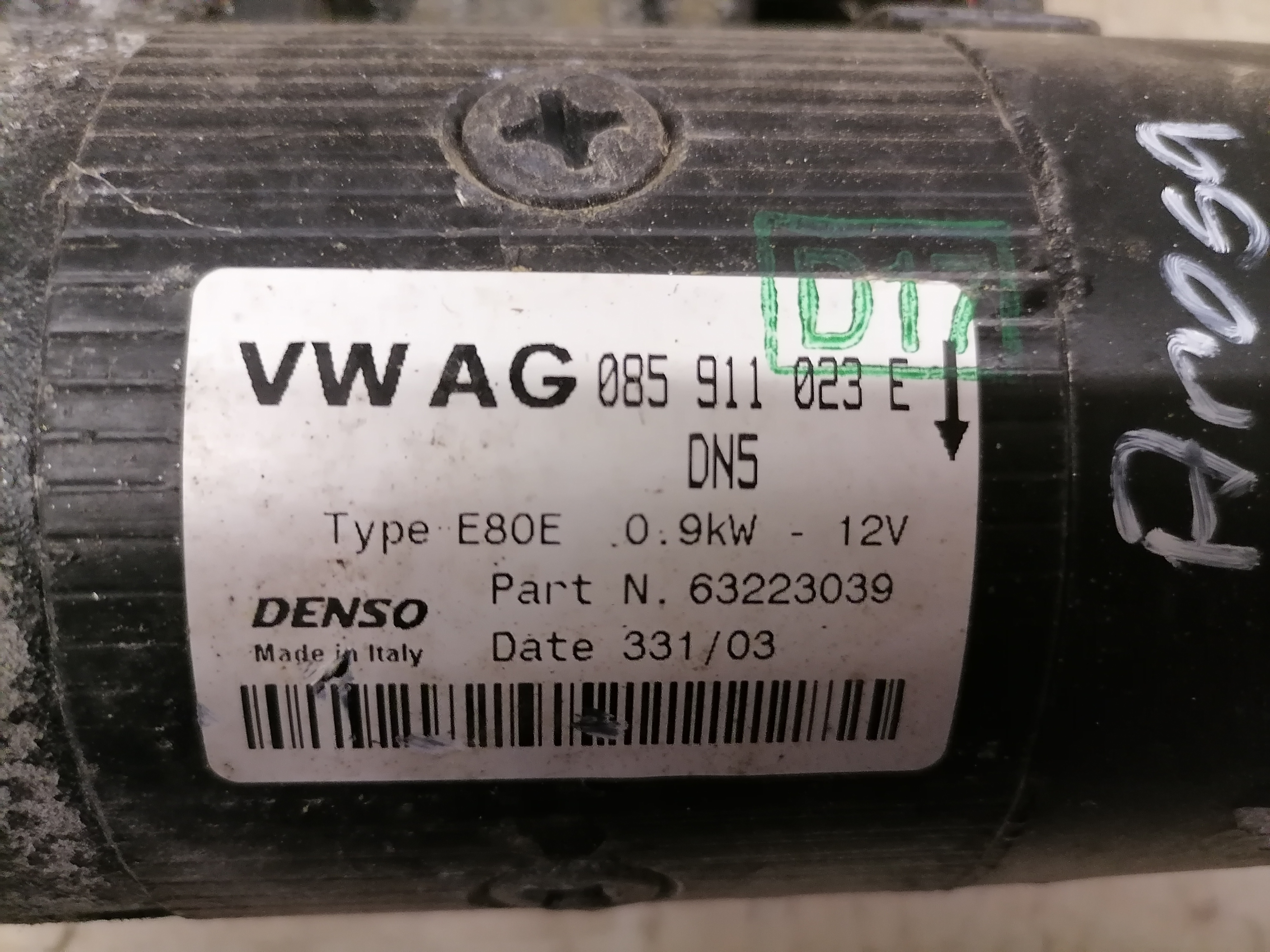 Anlasser 1.0l 37KW, Originalnummer 085911023E, Hersteller Denso, Gebrauchsspuren
