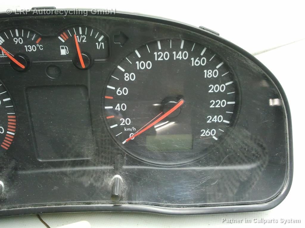 VW Passat 3B BJ1998 Tacho Kombiinstrument 3B1919881F, VDO 110008794006, mit Drehzahlmesser & Anzeige bis 260 km/h, ohne Welle, mit MFA / Bordcomputer, 1.8 92kW *ADR*, 5G-Schalter, Gebrauchsspuren
